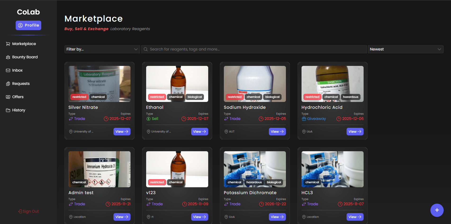 A chemical reagent trading platform with a built-in complete user registration and online order processing & tracking system for all universities across New Zealand. Deployed in vercel and AWS EC2 with Firebase database handling user storage and data operation. Developed with a team of 6.